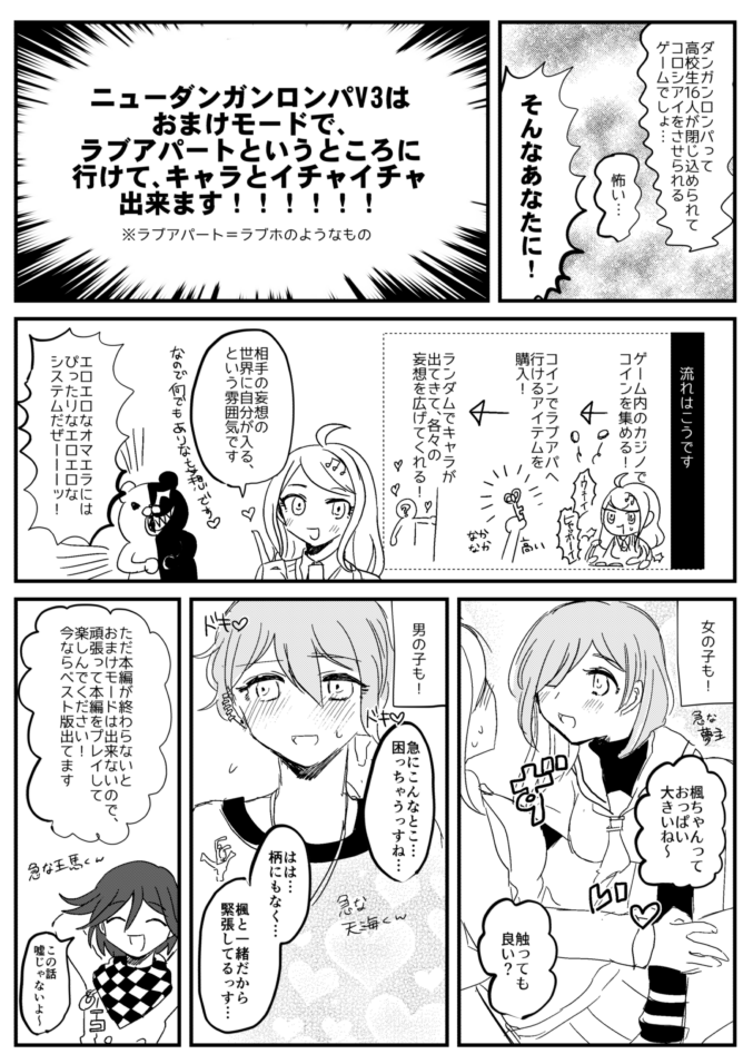 最近 Category:絵 Date:2018年01月26日 ペダル・ダンロン また日記が空いてしまった…。 8月の夢ノ箱庭に出たいな~と思い原稿期間に入りました。今までイベントで外見と名前が固定された夢主本って公に出したことなかったので、夢中心イベントだしせっかくだしまとめたいな~と考えてます。ダンガンロンパの暗い本と、ペダルの映画の話をまとめた本と、あとダンロンのエロいやつ…8月…あと7か月…3冊行けたら…そんなに生き急いで何になるんだ…という感じですが…。 ■弱虫ペダルの話 ファンブックと最新刊の話をしようしようと思って、いまだに噛み砕けてなくてふわっとした感想ですが…。なんかもったいなくて読めない…。最近のペダルのコミックの話具合というか青八木さんが出てくるとめちゃくちゃ好きだな~と思います。T2VSうらくぼくんとか、鏑木くんと青八木さんの関わりだったりとか…かっこいいですよね…舞台の2年目合宿編を見てからもっと好きになりました。5本の指に入るくらいには青八木さん好きです…。 ファンブックは今泉くんえらい可愛いですね…!新キャラのプロフィールありがたい…!個人的には銅橋くんとゆうとくんの情報が萌えました…いくらでも名前を呼んであげるよ…。 ファンブックネタもちょこちょこ描いていきたいです…。 つづきを読むで夢女集まってプレゼント交換した話です。普通に私の日常です…。 つづきはこちら